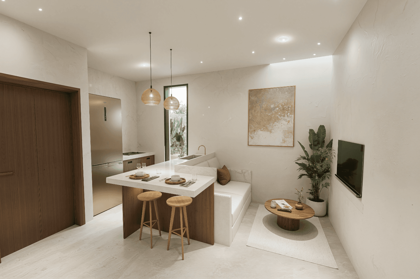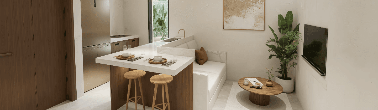 12 private apartments with shared spaces, designed for focused work, daily movement and real rest.
